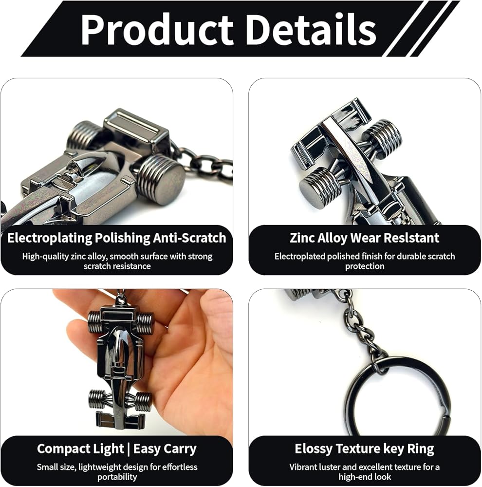 [High-quality materials] Crafted from premium zinc alloy, this F1 keychain boasts a high-end weighty feel and exceptional durability. The polished metallic finish resists fading and scratches, ensuring your Formula 1 keychain maintains its sleek, collectible look just like a detailed hot wheels keychain for adults. It's built to last as a premium piece of F1 merchandise.