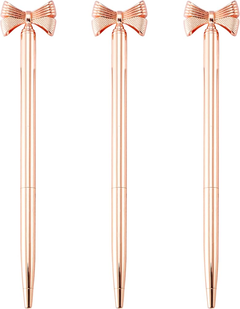 Unique Bow Decoration: A bow decoration is attached on top of the metal ballpoint pen, and this unique design looks fashionable, stylish, full of charm