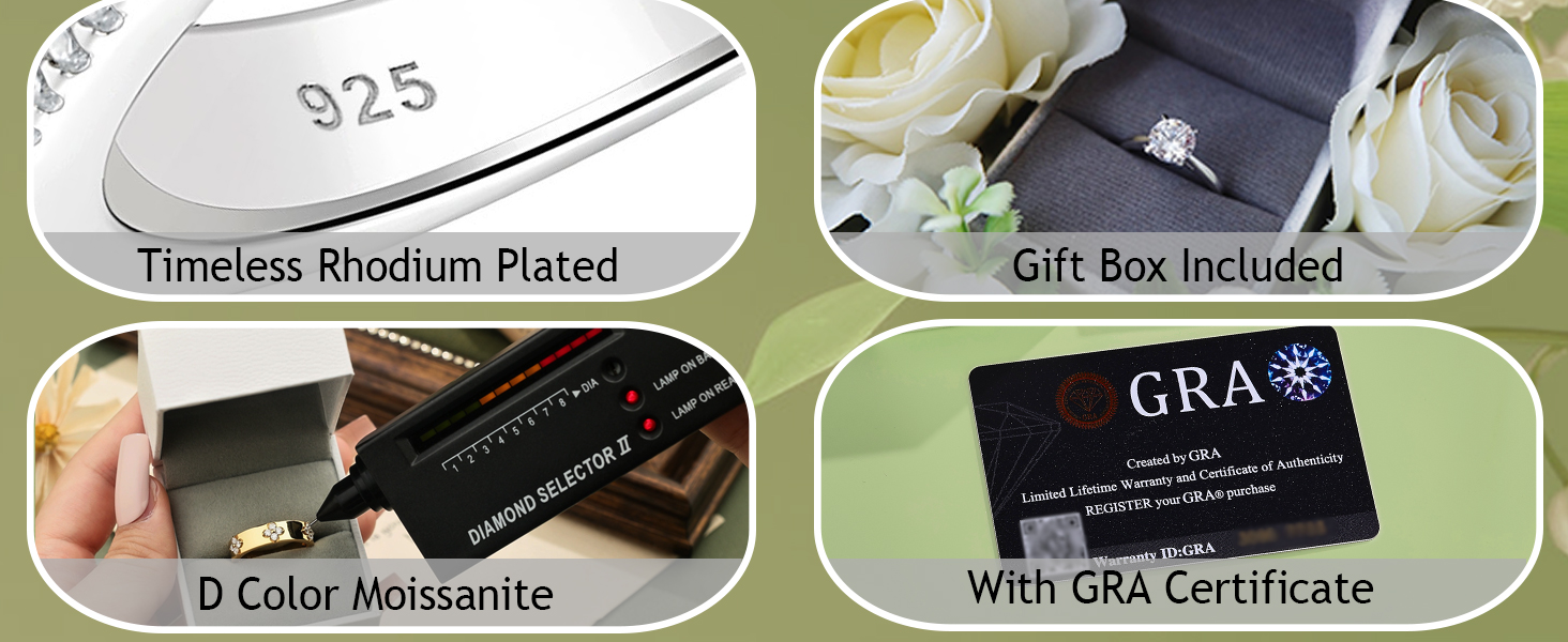 Genuine & Dazzling Moissanite: Adorned with high-quality, D Colour VVS1 Clarity Moissanite stones that offer exceptional brilliance and fire, rivaling traditional diamonds at a fraction of the cost. Enjoy lasting sparkle and durability for a lifetime