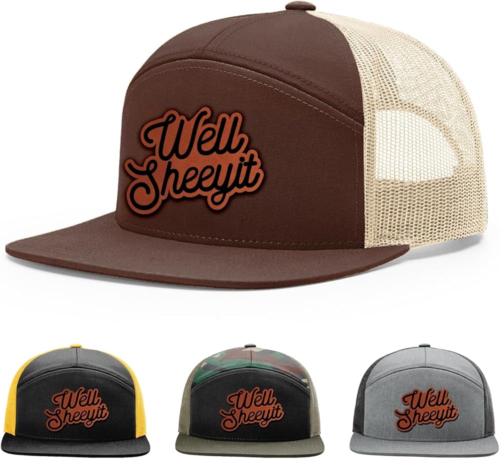 【Description】Well Sheeyit, Southern Slang Hat, 7 Panel Leather Patch Structured Baseball Cap with Snapback Enclosure