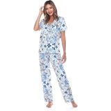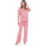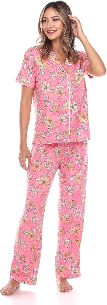 White Mark Women's Pajama Set will make sleeping cozier and dreamier than ever. This beautiful two-piece set includes a short sleeve button up top and matching full-length bottoms. Made from a lightweight, cozy fabric that is both smooth and comfortable. White Mark Pajama Set is available in a variety of fun tropical prints ensuring you remain stylish while you sleep. These pajamas are stylish enough to double as loungewear are make a wonderful gift.
