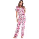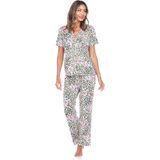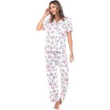 WHITE MARK WOMEN'S TROPICAL SHORT SLEEVE BUTTON UP TOP WITH MATCHING LONG PANT PAJAMA SET