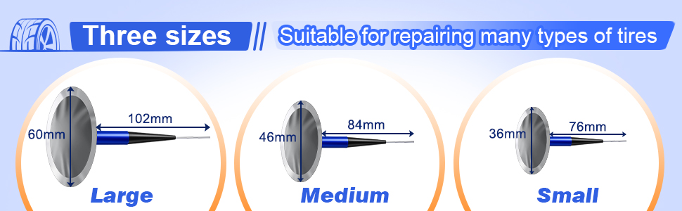 Proper size: the rubber puncture repair plugs measure about 6 x 48 mm/ 0.24 x 1.89 inch, are compact in size and light in weight, won't take up much space in your room, so you can store them in your trunk, bag, garage, office and home for instant use