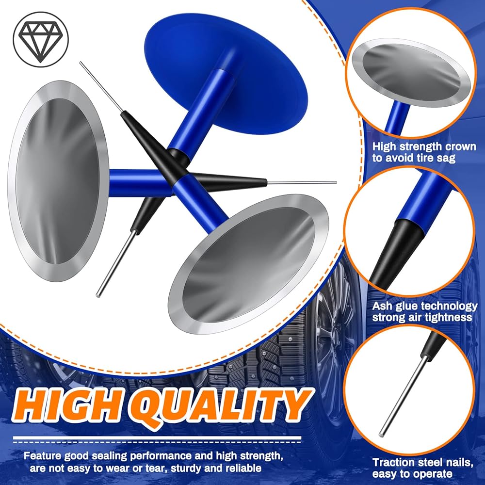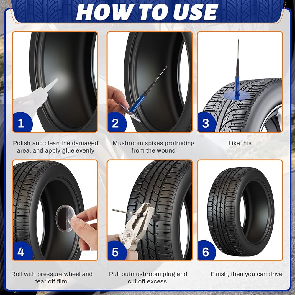 Necessary assistants for tire repair: the mushroom plug kit is designed with a rubber stem to fill hole in the tire, which can keep the wound from water and debris, so the steel belts will not easily get rust or delaminate; The round rubber patch can adhere fully during repairs, which can restore the airtight liner to proper function and avoid flat tire