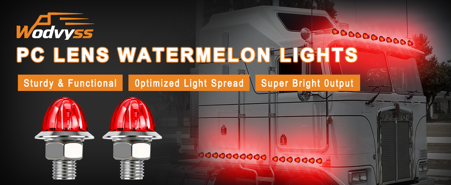 Ultra-Bright Custom LEDs: Equipped with bespoke, high-powered LEDs, PC watermelon lights deliver dazzling starburst patterns, ensuring your truck captures attention with superior brightness and clarity.