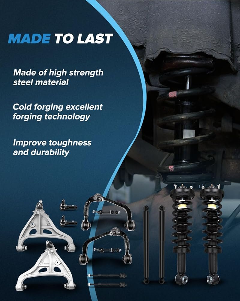 Package Included: shocks and struts suspension kit includes- 2pcs Front Complete Strut Spring Assembly, 2pcs Rear shock basorber, 2pcs Tie Rod End , 4pcs Control Arm and Ball Joint Assembly , 2pcs Tie Rod End , 2pcs Stabilizer Bar Link