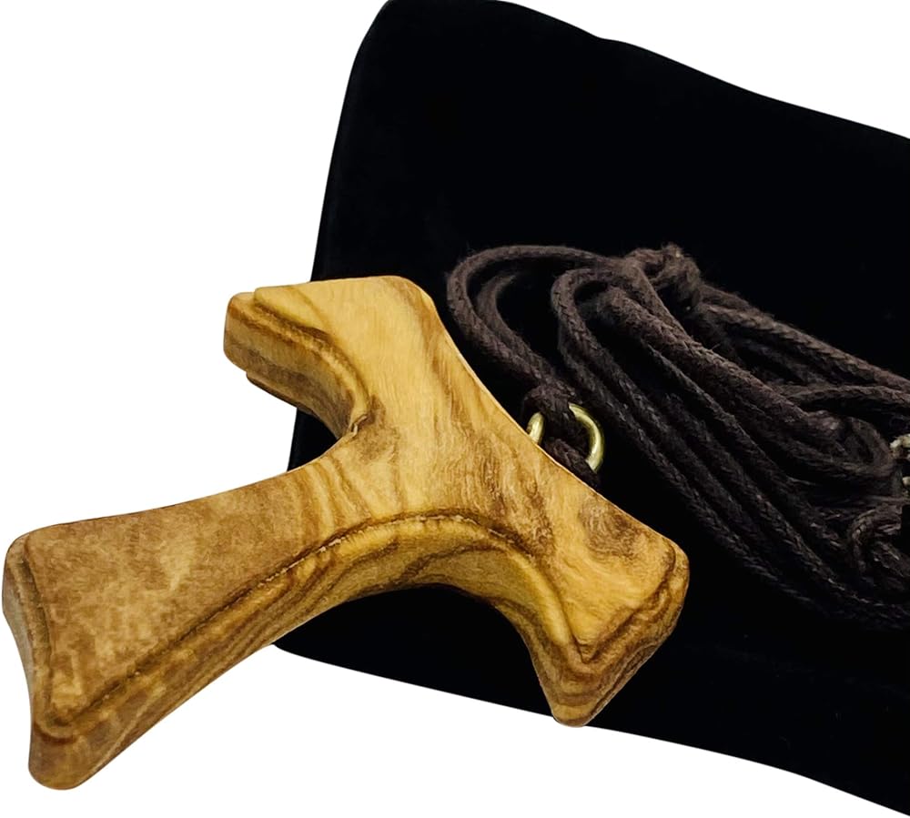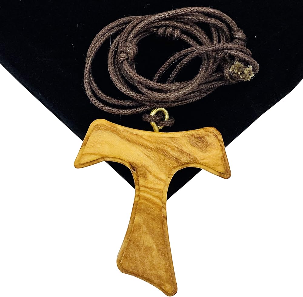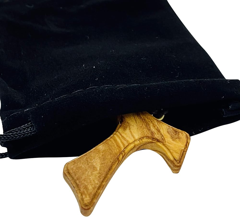 Amazing Saints Olive Wood Tau Cross Necklace with Black Gift Bag