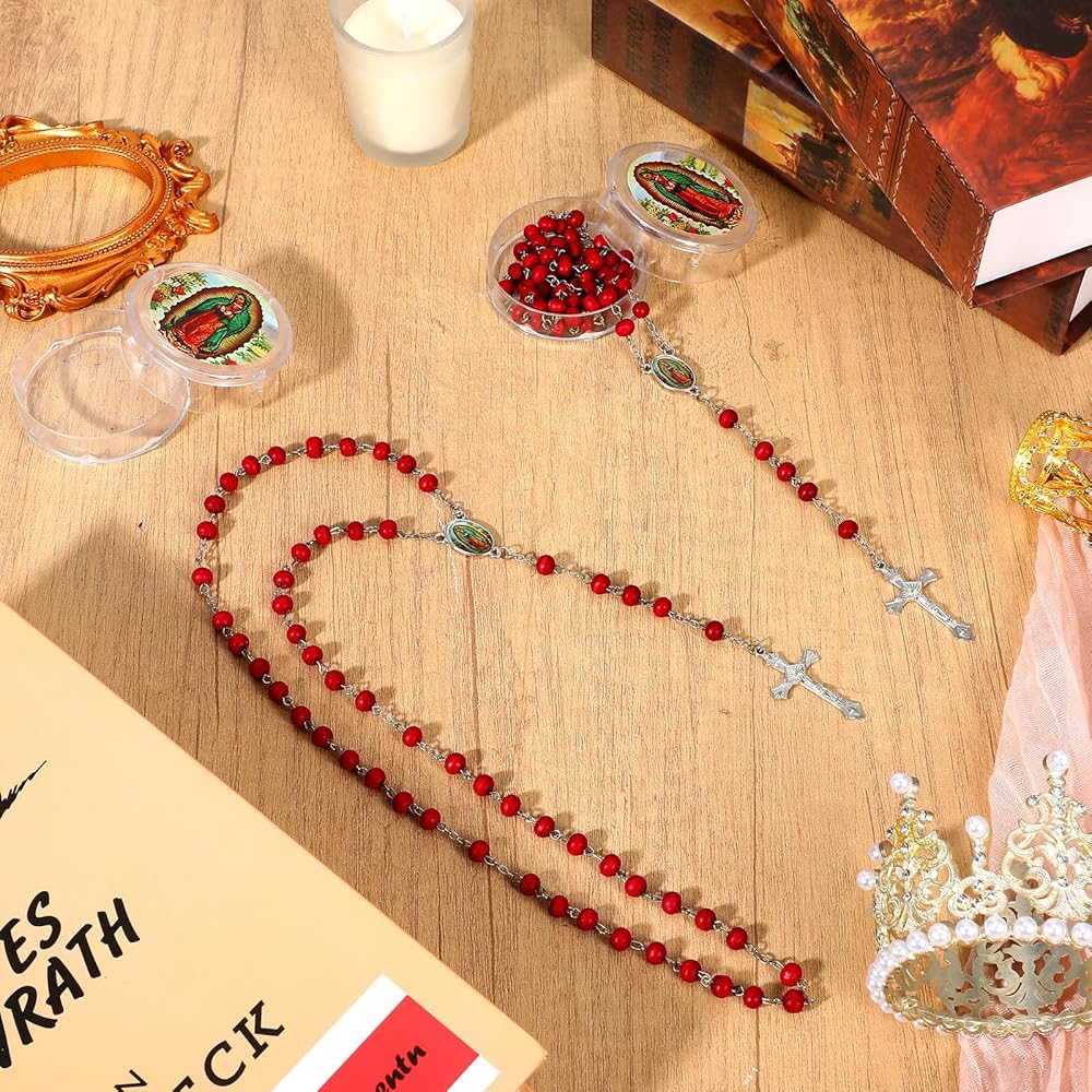 our rosary catholic gifts are mainly made of quality wood with alloy cross pendant, the connected part is iron, with clear and bright color printing, light in weight for you to carry, not easy to fade or tear, and the plastic box is also available for long time use.