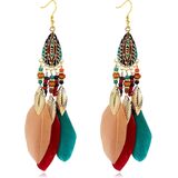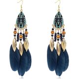 Make a bold fashion statement with these eye-catching Bohemian feather dangle earrings. Featuring an artful blend of vintage and punk aesthetics, these handcrafted beauties showcase natural feathers arranged in an elegant tassel design. The long, flowing style creates dramatic movement that perfectly captures the free-spirited boho vibe. These statement pieces add the perfect finishing touch to both casual and dressy outfits, making them versatile accessories for any fashion-forward woman. The distinctive design combines traditional craftsmanship with contemporary edge, resulting in a unique pair of earrings that's sure to draw admiring glances. Whether you're treating yourself or searching for that perfect gift, these striking dangle earrings deliver both style and sophistication. The lightweight construction ensures comfortable all-day wear, while the attention to detail in the handmade design speaks to their artistic quality.