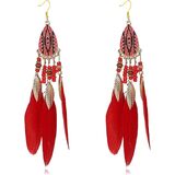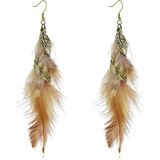 BOHEMIAN STYLE: Long feather dangle drop earrings featuring vintage boho punk design with natural tassel elements for a distinctive handmade look
