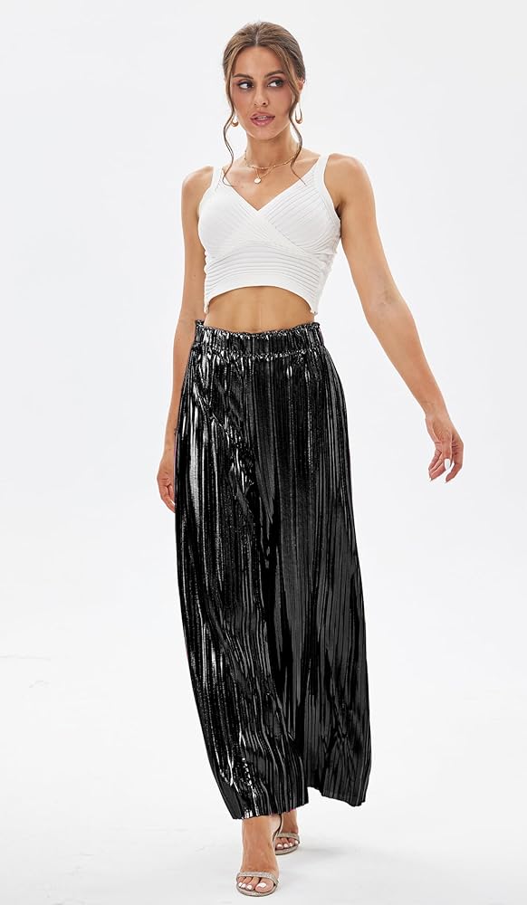 Sequin Pants for Women High Waist Wide Leg Palazzo Pants Night Club Sparkle Trousers Dressy Casual