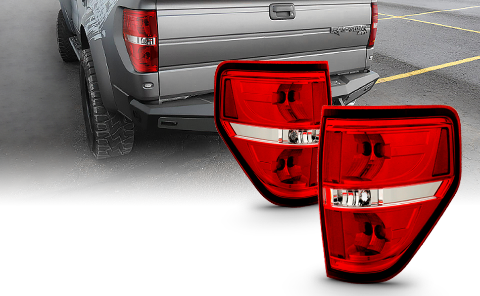 AmeriLite Red/Clear Brake Rear Direct OE Replacement Tail Lights For 2009-2014 Ford F150 F-150 - Passenger and Driver Side