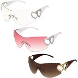 Revive the iconic aesthetics of the early 2000s with the JTYKUYR Wrap-Around Rimless Sunglasses. Combining retro charm and modern minimalism, these oversized shield sunglasses feature a frameless design with crisp clear lenses and metal heart decoration—a nod to the era's obsession with metallic futurism. Perfect for trendsetters craving a blend of nostalgia and cutting-edge style, these shades are your ticket to standing out at Coachella, mastering streetwear layering, or channeling cyberpunk vibes on urban adventures.