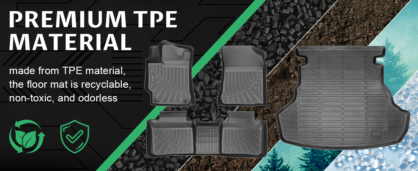 PREMIUM TPE MATERIAL: Made from recyclable, non-toxic, and odorless TPE material, the floor mat is highly durable and resistant to extreme heat and cold, ensuring long-lasting use without deformation or damage.