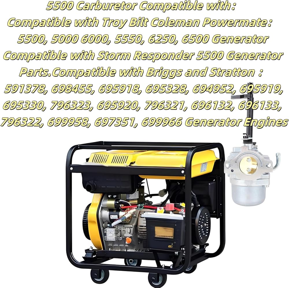 Compatible with: Troy Bilt Coleman Powermate 5500, 5000 6000, 5550, 6250, 6500 Generator.