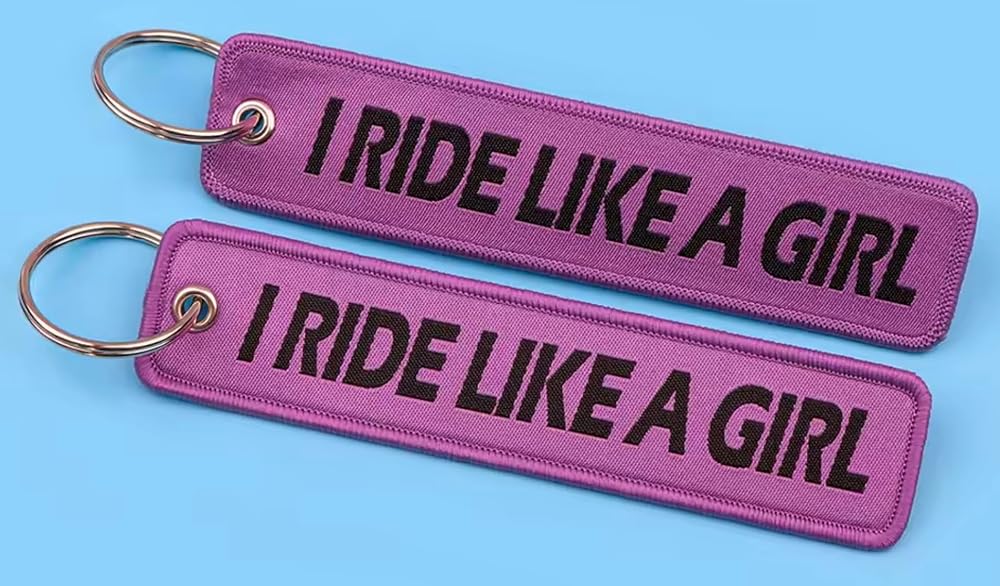 Pinstant I Ride Like A Girl Power Women's Rights Feminist Feminism Anti-Sexism Strong Woman Smash Patriarchy Racing Motorcycle Motorbike Biking Biker Ride Riding Race Keychain Key Tag Chain Fob Ring