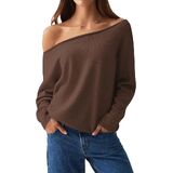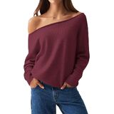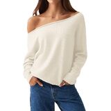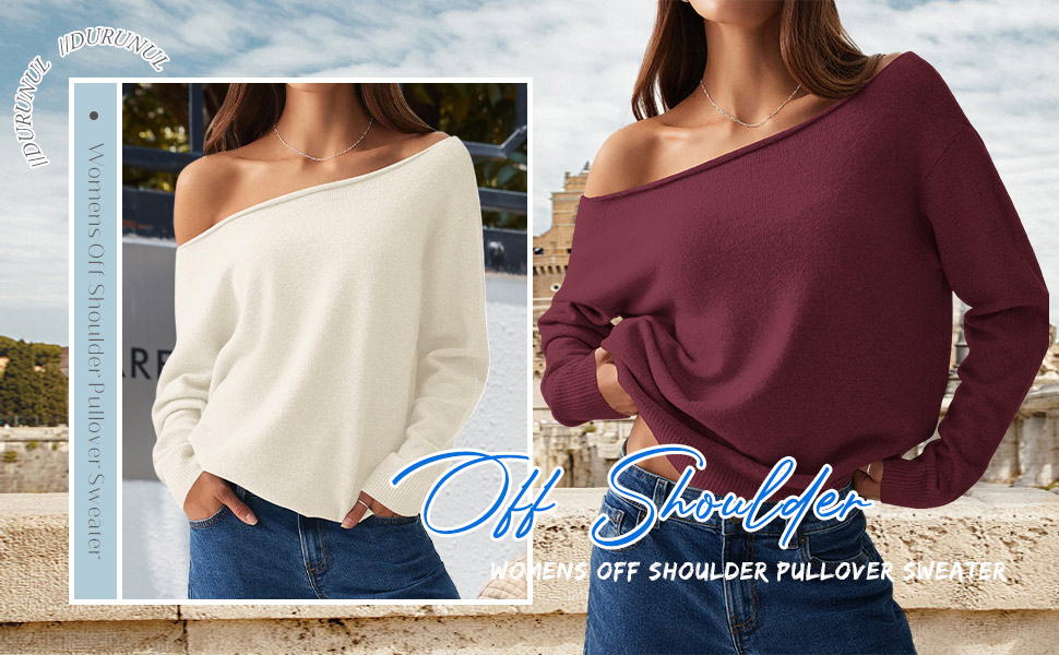【Match】Women's fall pullovers sweaters features off-the-shoulder neckline that elegantly shows off your collarbones; Tuck the front into your favorite jeans, skirts, or leather pants to define your waist and create a put-together look in seconds