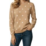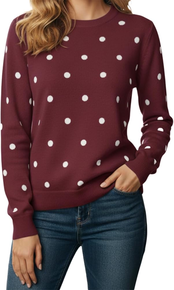 This Grewear Women's Polka Dot Crewneck Sweater is designed for both comfort and style. Made from soft and breathable knit fabric, it offers a relaxed fit with a classic crewneck design. Whether you're dressing up for a casual outing or enjoying cozy weekend vibes, this sweater is your go-to choice for effortless fashion. Available in a variety of sizes ranging from XS to 3XL, it provides a flattering fit for all body types. The playful polka dot pattern adds a touch of fun and modernity, making it easy to pair with jeans, skirts, or leggings. Perfect for spring, fall, or even layered for winter, this versatile sweater can be dressed up or down to match any occasion. Crafted with attention to detail, this pullover features a soft, comfortable feel against your skin, ensuring all-day wearability. The timeless design of the polka dots combined with the relaxed fit makes it suitable for everyday wear, making it an essential addition to your wardrobe. Whether you're at home, at work, or out with friends, this sweater will keep you looking stylish and feeling comfortable. Make it your go-to piece for layering or wear it solo to stand out in style.