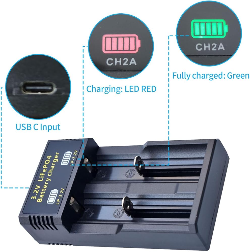 【3.2V LiFePO4 Charger Specification】It is designed for charging 3.2v LiFePO4 Battery, USB-C Input: 5V/2A, Output: 3.6V/1A (CAN NOT charge the 3.7v li-ion, and 1.2v Ni-Mh battery)