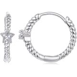 Dainty Star Charm Design Features a beautifully crafted, light blue five-pointed star stone set on a delicate twisted hoop. This elegant combination offers a fresh, romantic, and playful look perfect for daily wear.