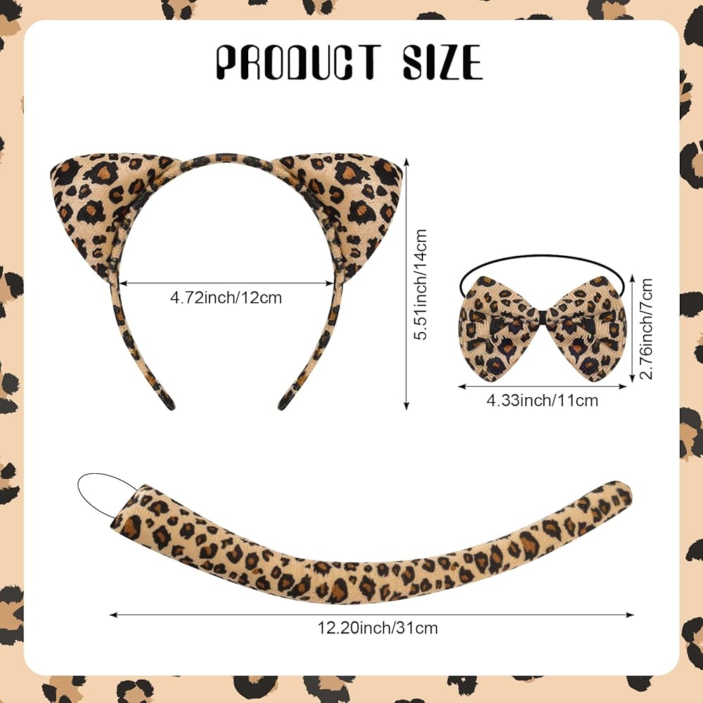 --The cheetahs ears headband is about 5.51 * 4.72 inches, the Cheetahs bowtie is about 4.33 * 2.76 inches, the Cheetahs tail is about 12.20 inches long.