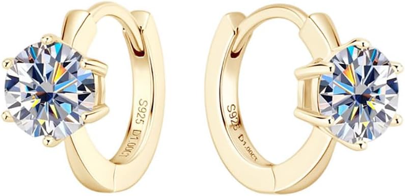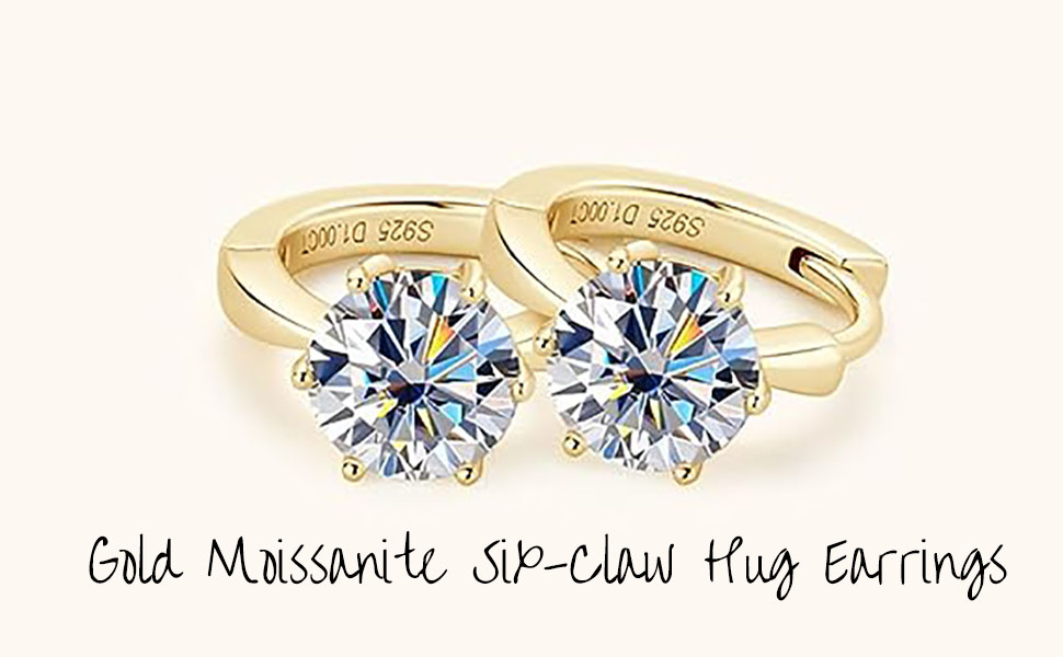 【Four Claws Design】This is a simple hoop earrings, the gold earrings are perfectly combined with a shiny single moissanite. Moissanite is as stylish as being wrapped in four claws, and the ear loop design makes you more comfortable and lightweight.