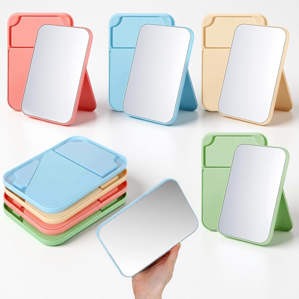 Multifunctional: Our foldable mirrors can be used as desktop standing mirrors or handheld mirrors for convenient morning makeup or shower shaving. They are also suitable for home use, beauty salons, art fairs, craft exhibitions, personal care, skincare, brushing teeth, flossing, and more.