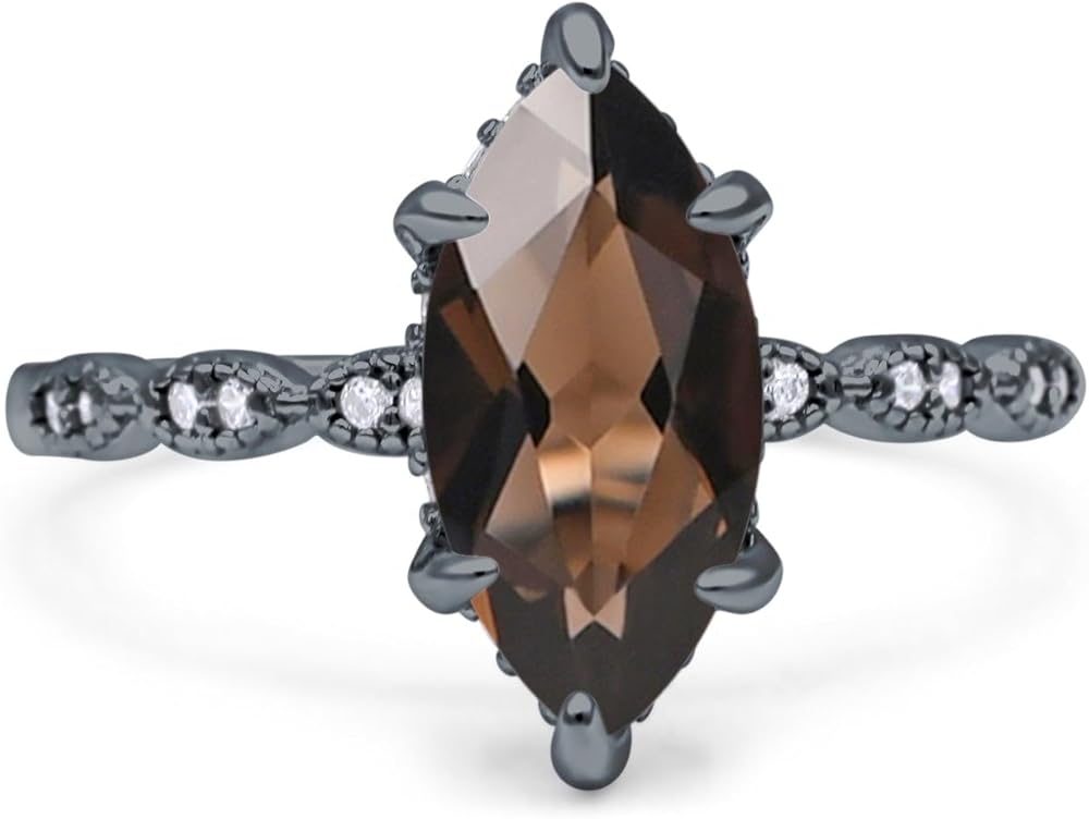 PERFECT & COMFORT FIT: Ring Face Measurements: 14mm(0.55"), Center Stone Measurements: 12mmX6mm, Gemstone Approximate Carat Weight: 1.62ct. Ring Size: 5 to 10.: Elegantly crafted from 925 sterling silver, this art deco-inspired engagement ring features a marquise cut natural smoky quartz gemstone. The gem is accented by a hidden halo of sparkling cubic zirconia stones, adding vintage charm to its classic design. A timeless piece that captures both sophistication and romance.