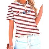 American Flag Shirt for Women Sequin USA Stripes T-Shirt 4th of July Patriotic Tee Tops