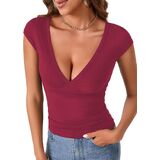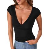 Cap sleeve, regular length, sexy deep v neck designed is perfectly showcase the delicate collarbone, charming and feminine, slim fit tee shirt for women is such a daily tee suitable for women and girls.