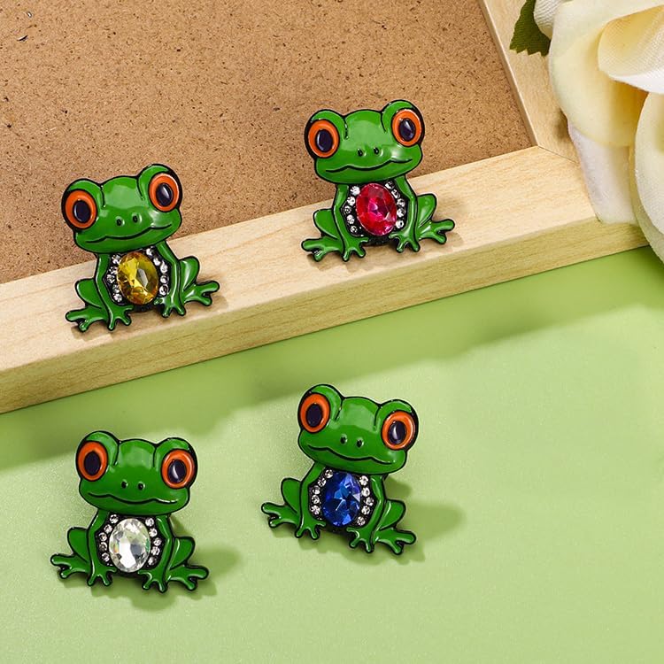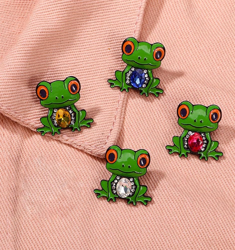 This charming frog-shaped brooch is designed to bring joy and personality to your wardrobe. With its cute cartoon frog, glossy enamel finish, and sparkling gemstone accent, it effortlessly elevates any outfit—from denim jackets to backpacks or even hats.