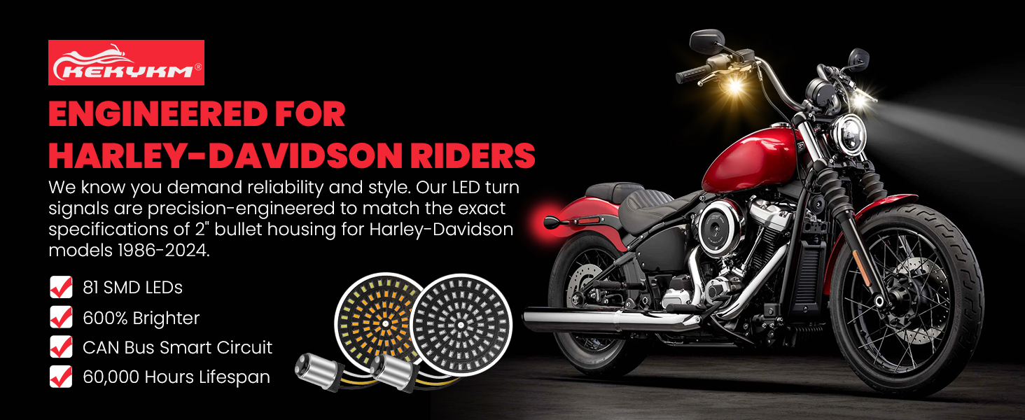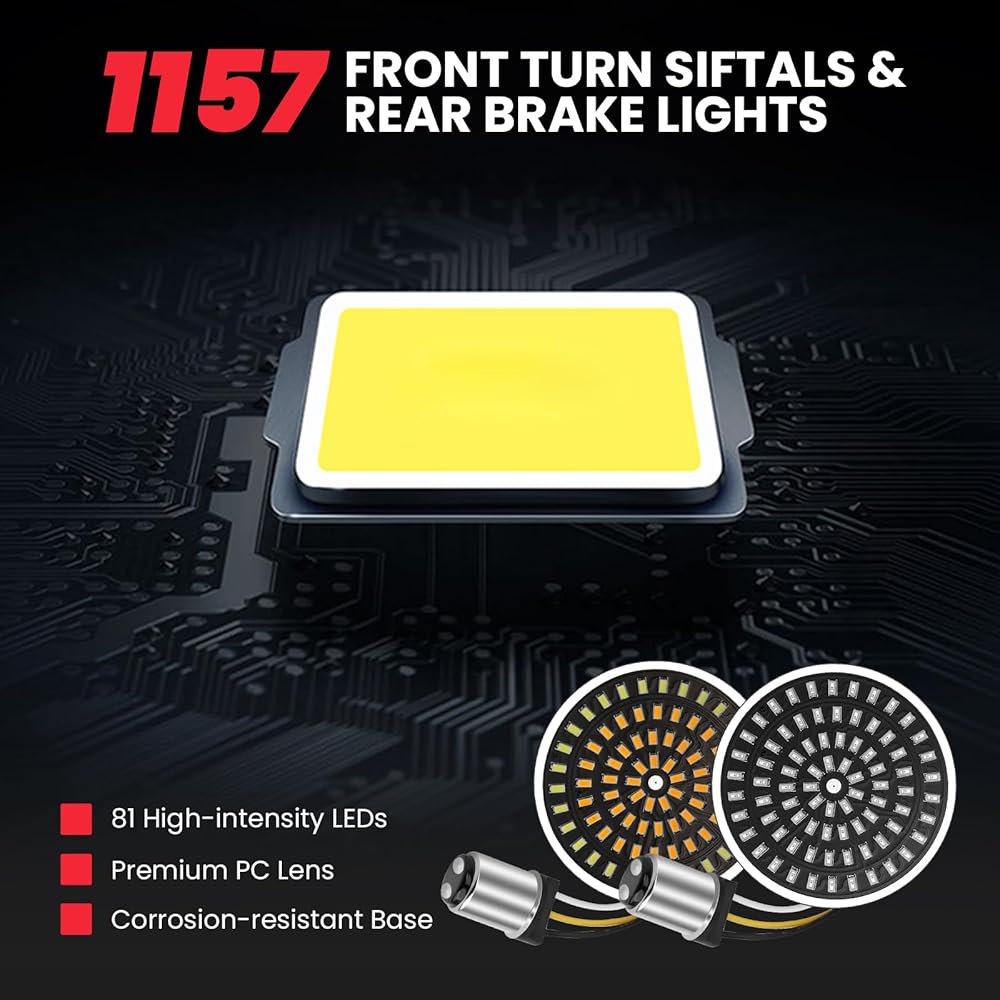 【10-minute plug & play install 】Direct bolt-on, no wiring/splicing/resistors/modifications. Complete kit includes 2 front 1157 switchback LEDs + 2 rear 1157 brake/turn LEDs + 4 smoked lenses + 1 installation tool – everything for a hassle-free upgrade. Ideal for daily commutes, road trips, custom builds – a must-have Harley Davidson accessory that boosts safety & style. built to outlast your ride!