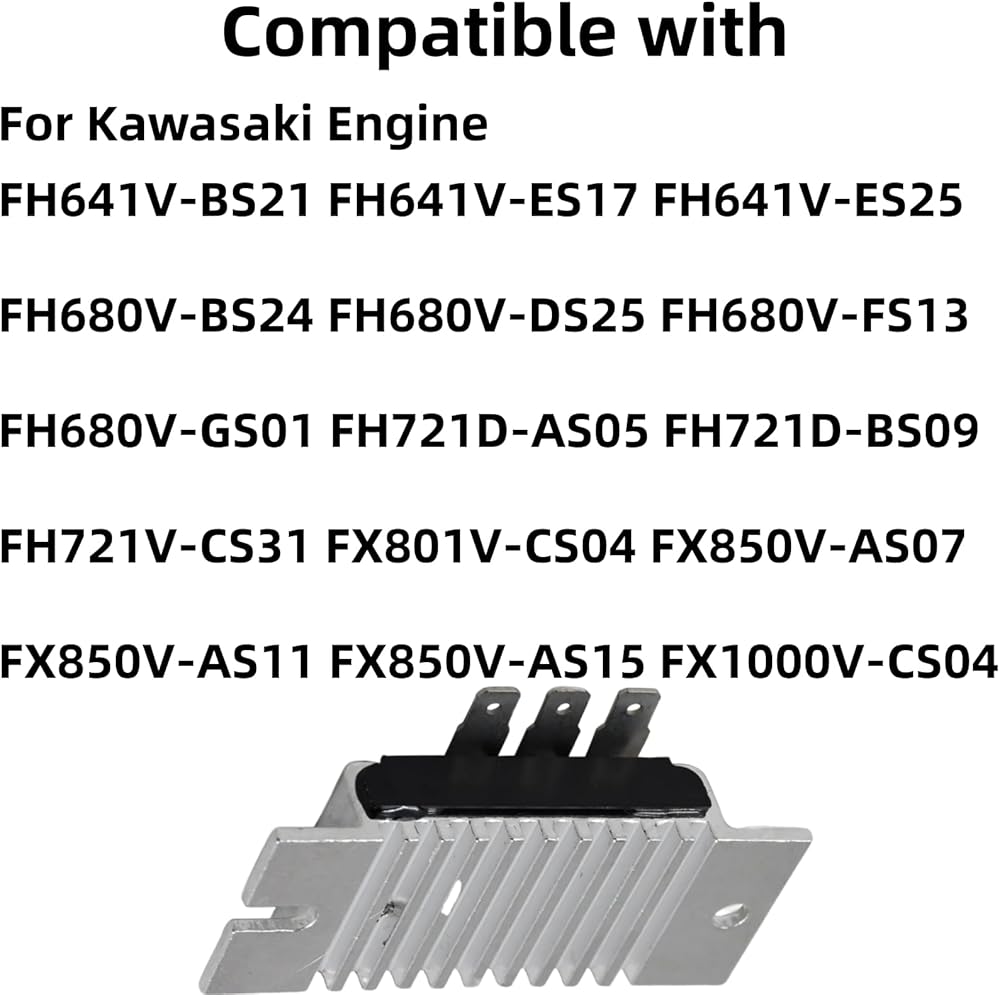 Compatible with: 21066-7011 Voltage Regulator Compatible with Kawasaki FH680V-GS01 FH721D-AS05 FH641V-ES17 FX850V-AS11 FH680V-BS24 FH721V-CS31 FH641V-BS21 FX1000V-CS04 FH680V-DS25 FX850V-AS07 FH641V-ES25 FX850V-AS15 Engines,Fits for Kawasaki Most FH Series Engines (T00V,751V,850V,801V921V)