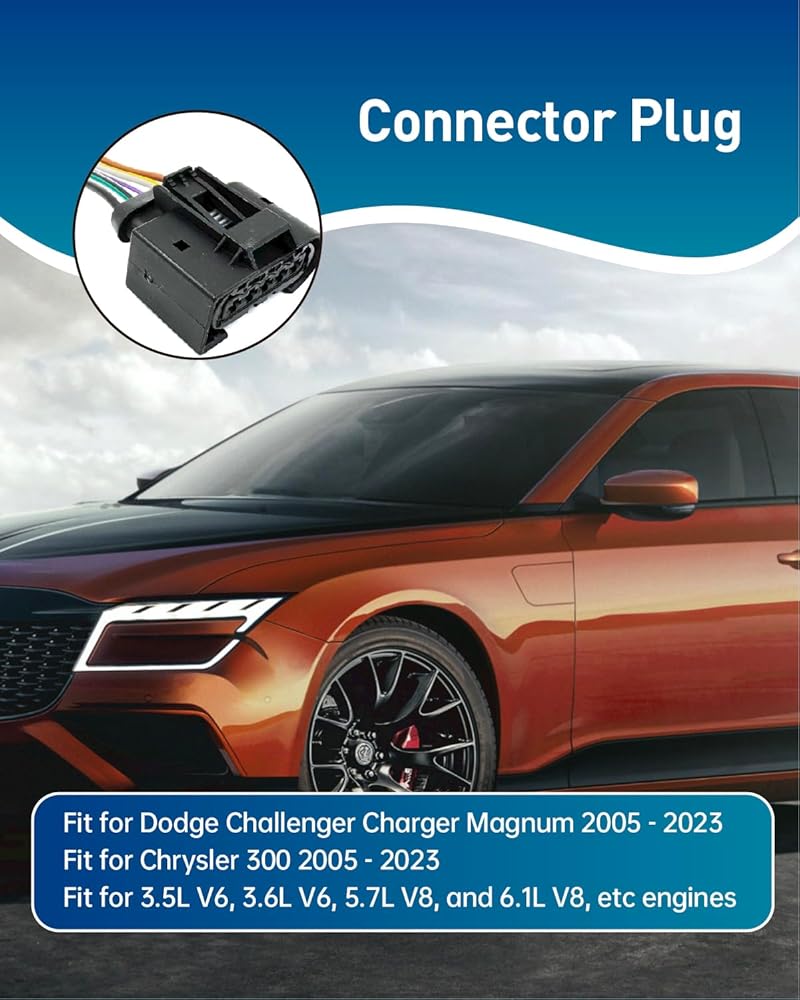 Compatibility: Fits for Dodge Challenger, Charger, Magnum 2005 - 2023, and Chrysler 300 2005 - 2023. Also compatible with 5-wire connector plug wiring harness for engines such as 3.5L V6, 3.6L V6, 5.7L V8, 6.1L V8, etc