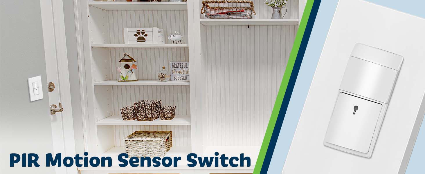 Motion sensor switch detects motion to automatically turn ON/OFF lights, fans and motors based on the occupancy or vacancy in a room. Wall Plate Included