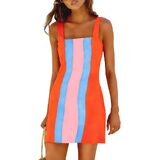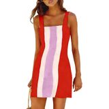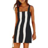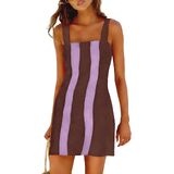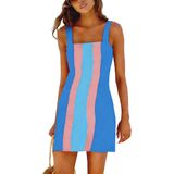 Features: Sleeveless color block mini dress with square neck, wide adjustable shoulder straps, slightly fitted waist design and stretchy back panel to show your curves perfectly. Side invisible zipper closure for easy on/off, functional side pockets for convenience