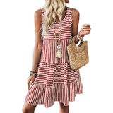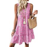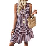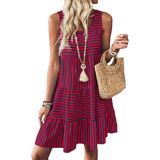 Feature: Striped dress for women, scoop neck, sleeveless, tiered boho sundress, above knee length, loose fit. The A-line silhouette flatters all body shapes.
