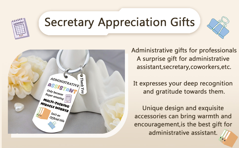 Secretary Appreciation Gifts/Administrative Gifts for Professionals:Thank you gifts for coworkers.You can give this keychain to administrative assistants,secretaries,coworkers,work besties,etc.It's the best gifts for administrative assistant.