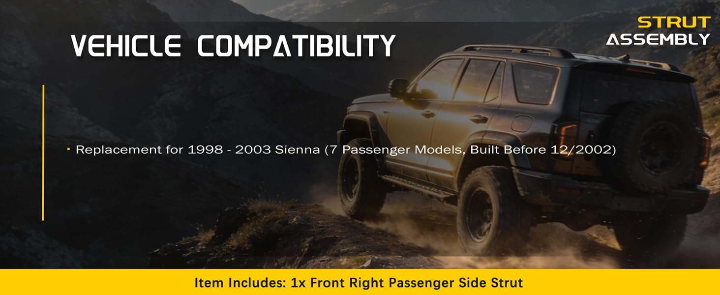 - Replacement for 1998 1999 2000 2001 2002 2003 Toyota Sienna (7 Passenger Models, Built Before 12/2002)