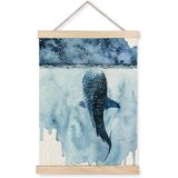 Yomisex Ocean Whale Shark Wall Art Poster, Beach House Room Decor, Blue Coastal Nautical Sea Animal Shark Wall Art Framed for Home Bedroom Living Room Decor, 12x16 Inch