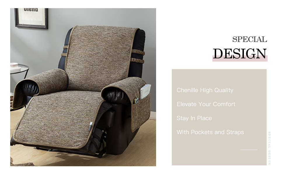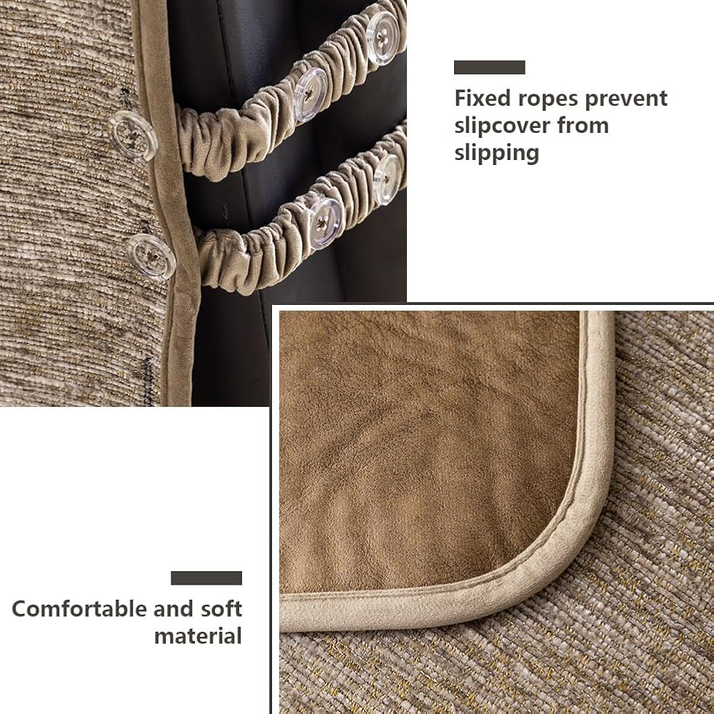 [Premium Material] Our Recliner Chair Cover features High Quality Chenille on the surface and back by non-slip fabric which is will help cover Stay In Place special for the LEATHER recliner. And The Chenille fabric is celebrated for its plush, thick, and high-quality texture, designed to elevate your comfort.