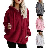 Hoodies for Women Fuzzy Fleece 1/4 Zip Pullover Oversized Sherpa Sweatshirt Fluffy Warm Winter Tops with Pockets