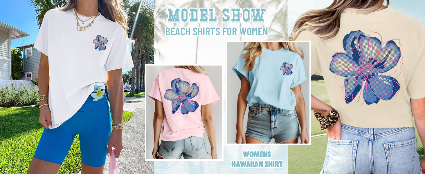 Match:Hawaiian shirts for women can be paired with short, denim hot pant, white wide-leg pant or denim skirt.When worn as an top, flower graphic tees can be tied at the hem or partially tucked into the lower part to improve the proportion. In terms of accessories, straw hats, bags and sunglasses can diaplay the overall vacation feeling