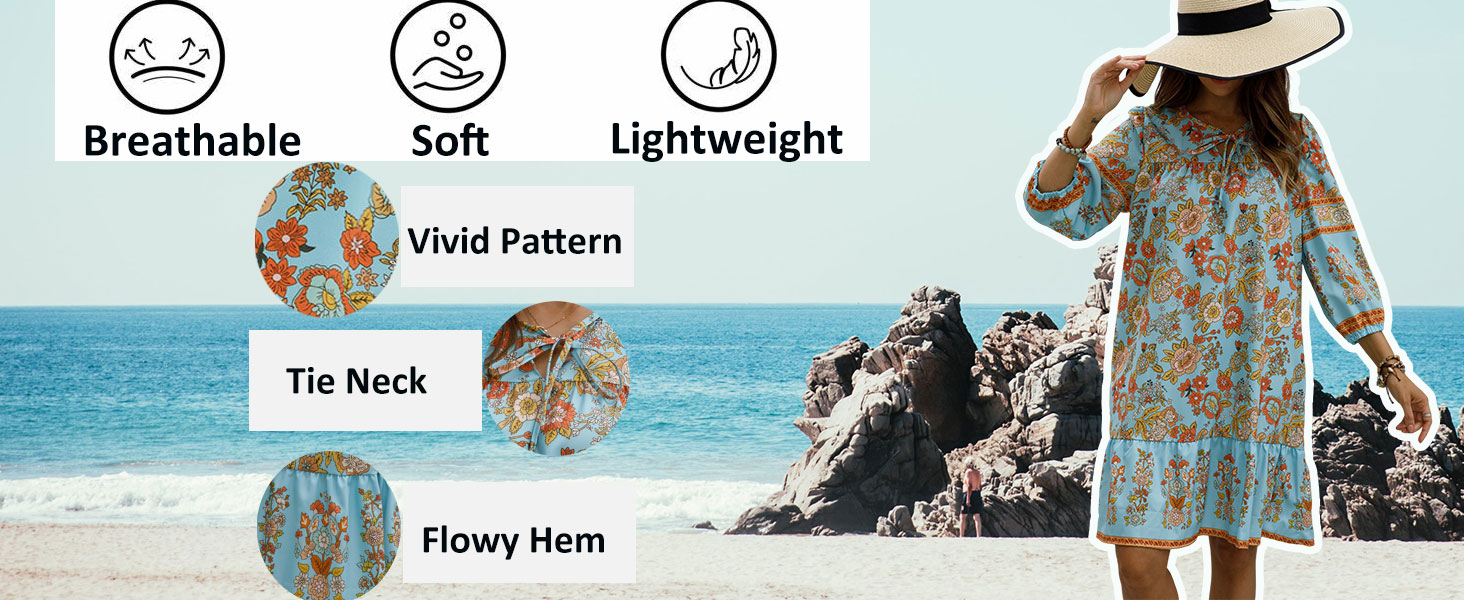 Material : Made of soft and lightweight fabric,this boho dress is not only gentle against the skin, providing a delightful all - day wearing experience, but it's also highly breathable, giving you a great breezy feel