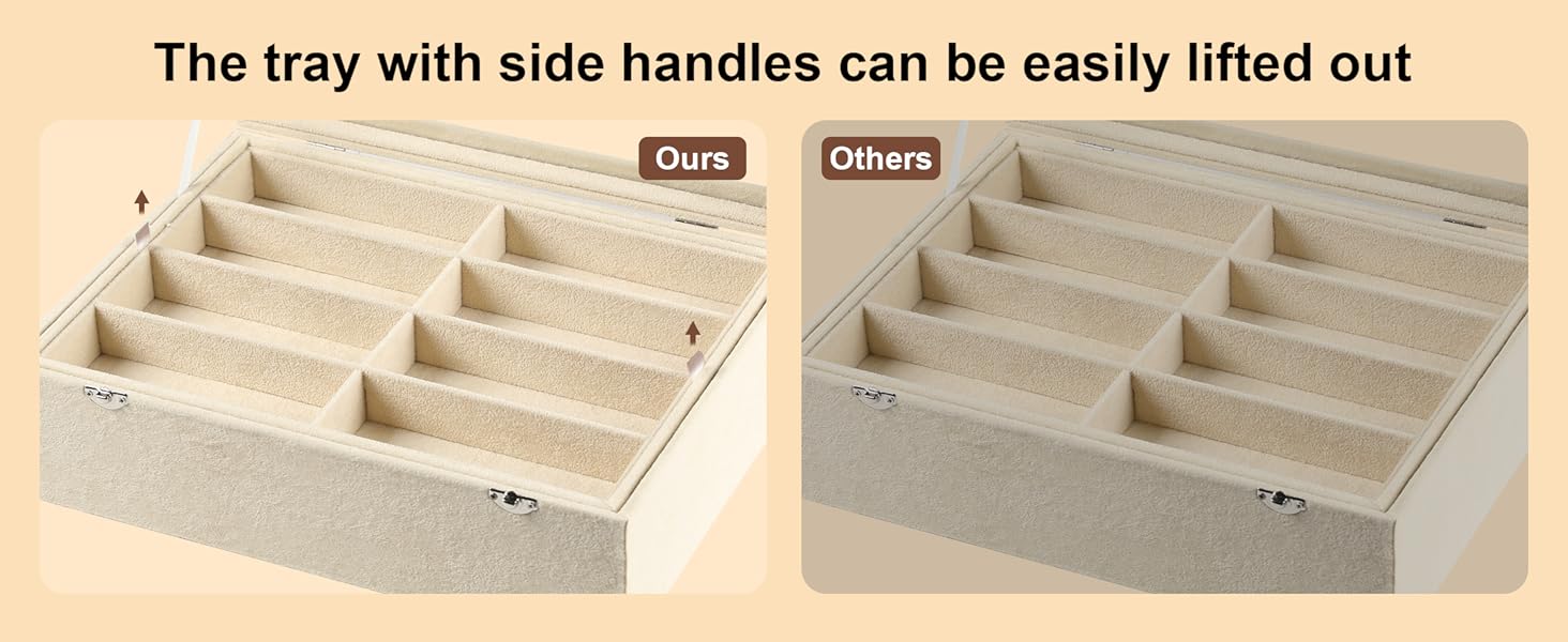 Adjustable Compartments:Our box with removable dividers that let you resize slots to fit various sunglasses sizes, from slim metal frames to oversized designer shades. DIY your ideal layout,ideal for users who want flexible organization options