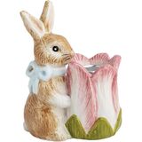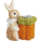 Add a touch of whimsy and elegance to your Easter celebrations with the Mud Pie Easter Ceramic Taper Holder. Crafted with meticulous attention to detail, this hand-painted stoneware piece features an adorable figural bunny design, complete with an attached cup to securely hold your favorite taper candle. Measuring 4 inches high with a 3-inch diameter, it's the perfect size to accentuate your dining table, mantel, or any cozy nook in your home. The light pastel pink hue of this taper holder adds a subtle yet sophisticated splash of color, making it a versatile addition to your seasonal decor. The durable stoneware construction ensures that this charming piece will be a cherished part of your Easter traditions for years to come. Whether you're hosting a festive gathering or simply enjoying a quiet evening at home, the Mud Pie Easter Ceramic Taper Holder creates a warm, inviting atmosphere. Its delightful design and quality craftsmanship make it an ideal gift for loved ones or a delightful treat for yourself. Illuminate your home with the gentle glow of candlelight and the enchanting charm of this beautiful bunny taper holder.