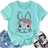 FASHION DESIGN:Easter day shirt, funny rabbit glasses graphic t-shirts, bunny rabbit leopard print short sleeve,happy easter tops,happy easter rabbit tee tops,bunny happy easter letter print shirt,bunny rabbit tees,bunny face floral glasses t-shirt.