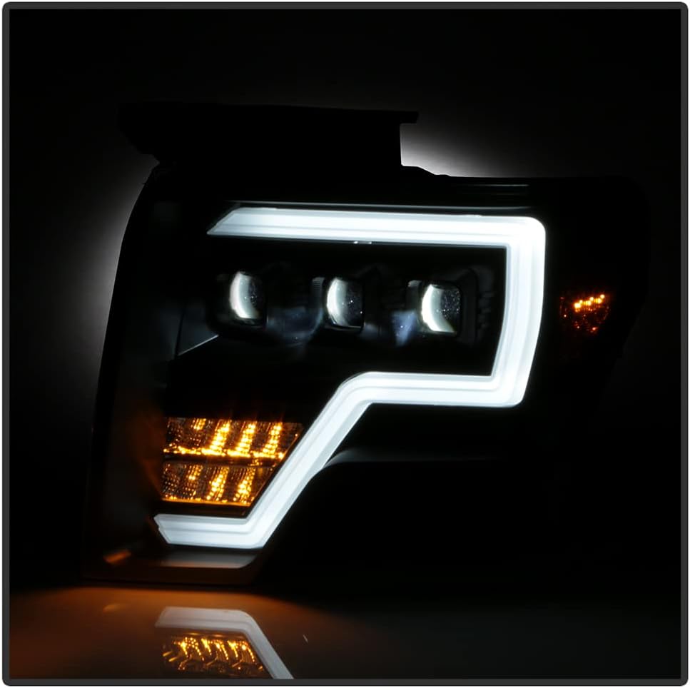 ACANII - For 2009-2014 Ford F 150 Pickup [Halogen Model] Full LED Light Tube w/ 3 LED Projector Headlights Headlamps Pair