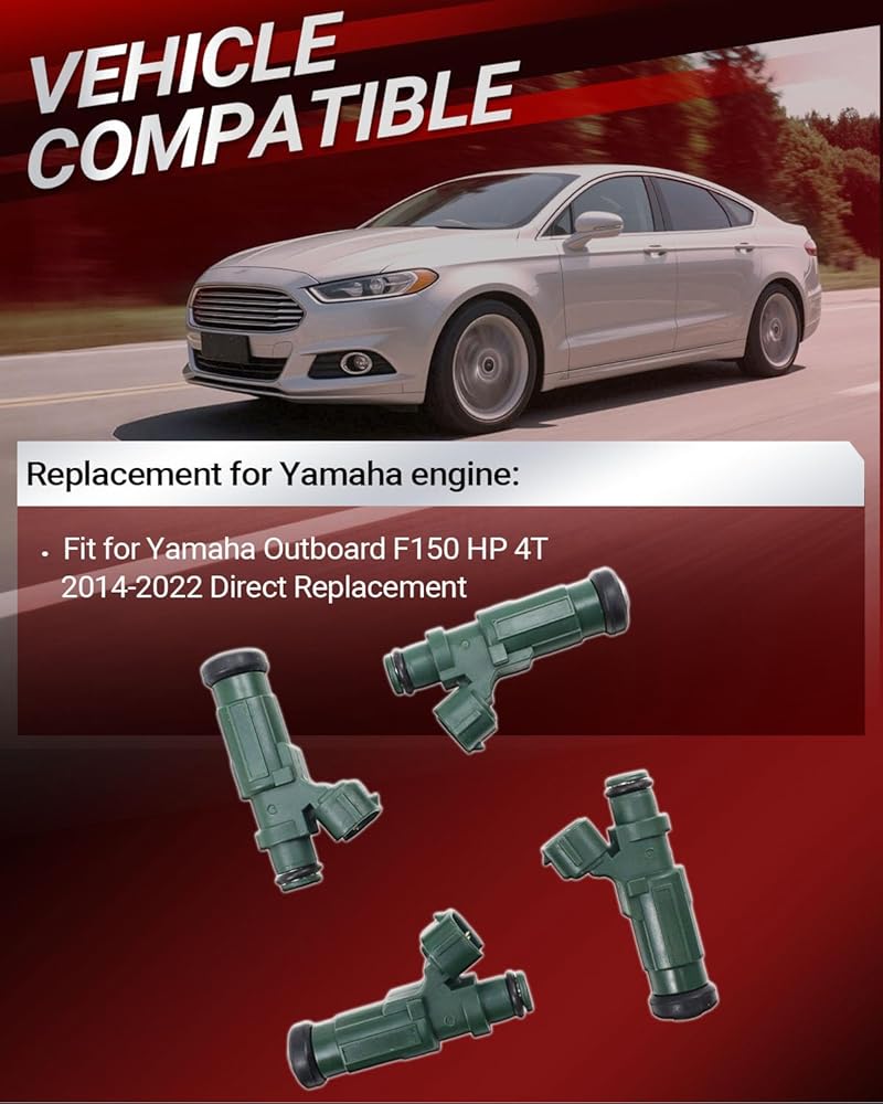 Kirogi 63P-13761-01-00 4pcs Fuel Injector Compatible with Yamaha Outboard F150 HP 4T 2014-2022 Direct Replacement OE Number 63P137610000 63P13761