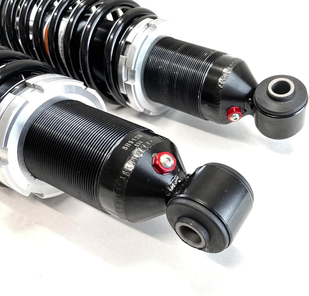 (both shocks) Replaces OEM # AM135375. Eye to eye distance: 373 mm, Body outer diameter: 46 mm, Spring outer diameter 86 mm. Upper eyelet: 12 x 24 mm, Lower eyelet: 12 x 24 mm.